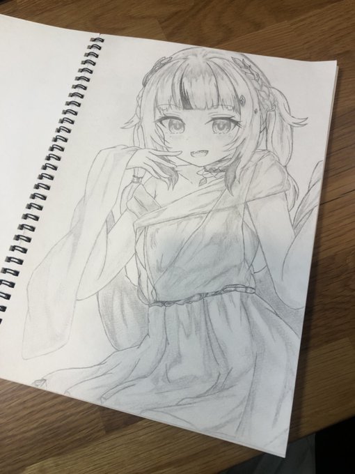 1 13 十五日、今回は肩の少し下まで描きました。翼は気分でつけました。 これは天使 #ホロライブ好きと繋がりたい #ホロライブ好きな人と繋がりたい #練習中 #アナログ絵 21/10/20 00:08