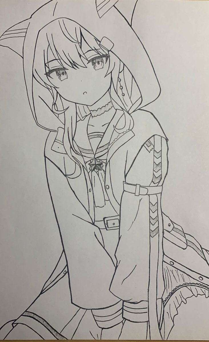 余! やっぱりペン書きすると拙さが… #ホロライブ #百鬼絵巻 #百鬼あやめ