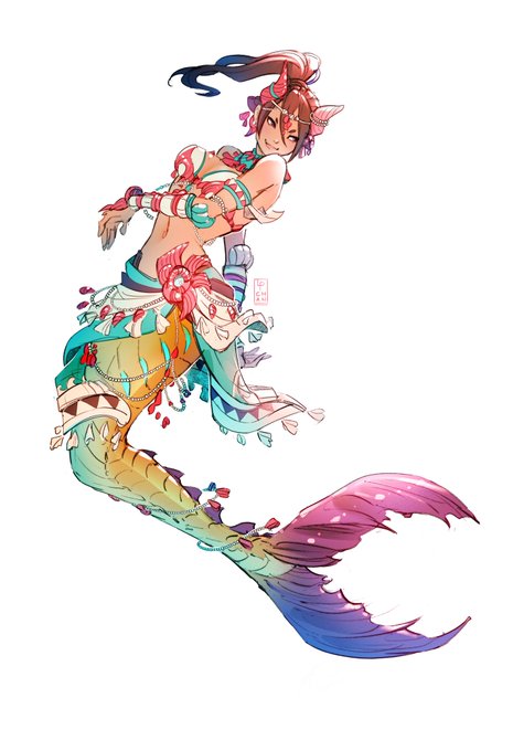 Commission I did for @DrM2theJ of his wife's hunter in Shell Studded armor! We also gave her a Somnacanth mermaid tail. 🧜♀️🎶 😴 #MonsterHunter