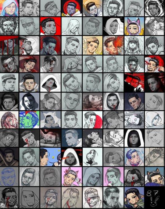 I drew Ogata 87 times... (I think at least we can see a bit of evolution ? or not🤔) #samecharacter #ゴールデンカムイ