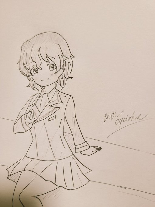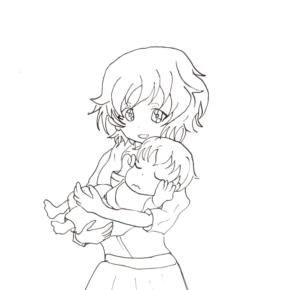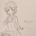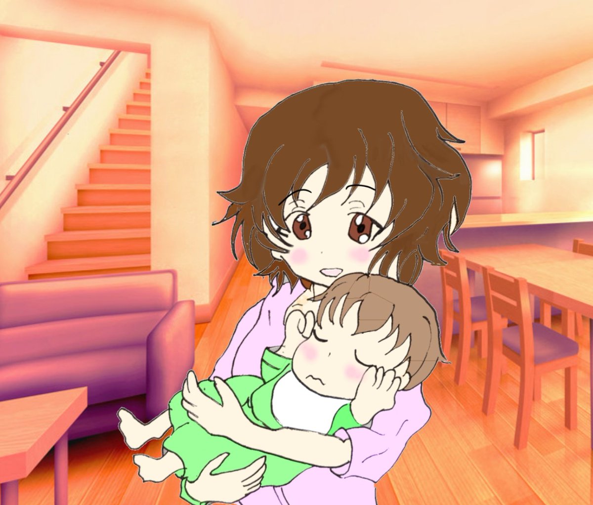#GuP版深夜のお絵描き60分勝負_20220906 #GuP版深夜のお絵描き60分勝負 秋山優花里の10年後 流石にスマホでペイントは慣れないと無理w(ちゃんと作業は一時間ですw ベターな感じで秋山殿(旧姓 それとベイビー(背景はフリー素から引っ張りましたw