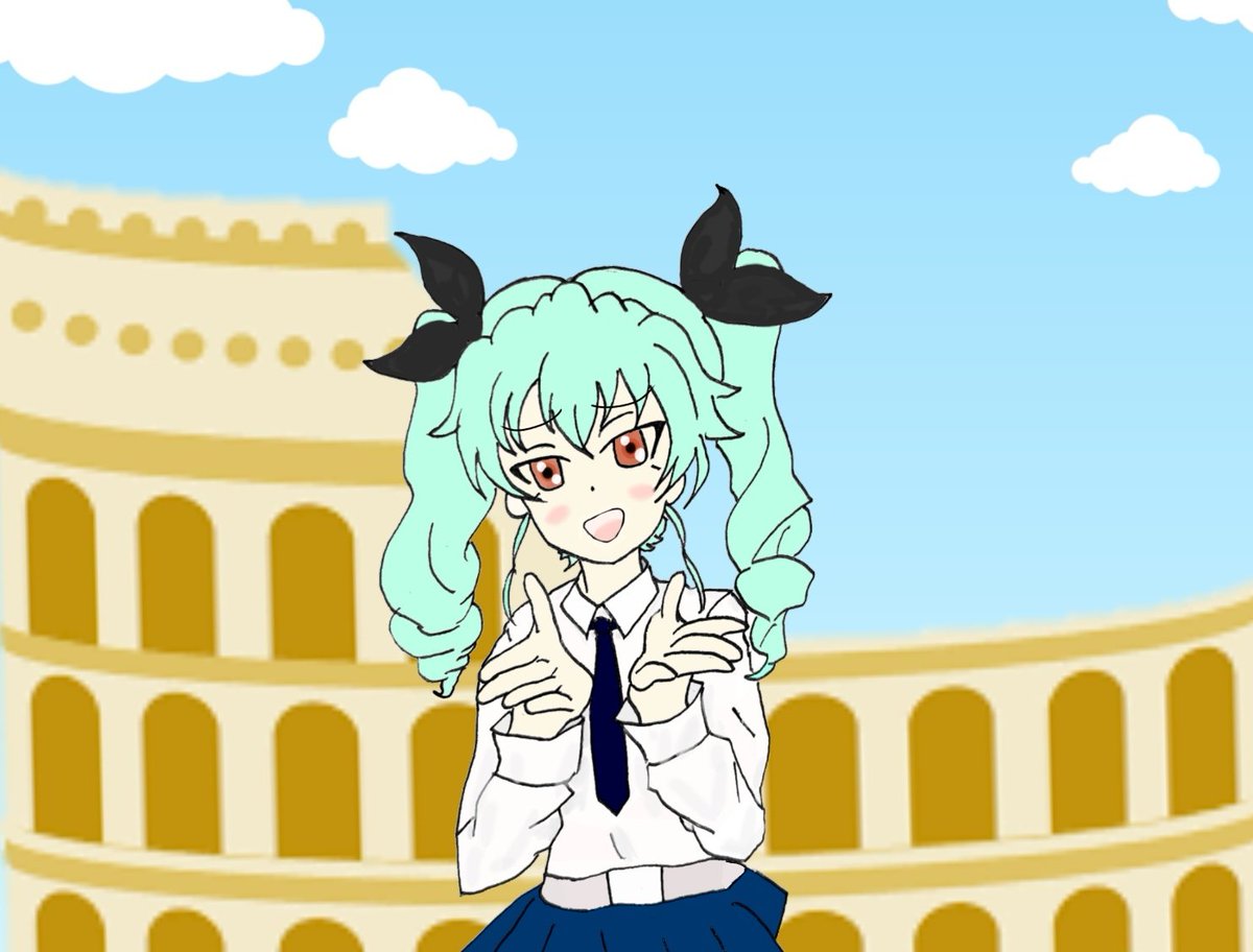 #GuP版深夜のお絵描き60分勝負_20220920 #GuP版深夜のお絵描き60分勝負 アンチョビ姐さんにやってもらいましたw 🐟姐:いやいや、恥ずかしいんだが? ※背景はフリーイラストから ※ペイントはスマホアプリで(^_^;)