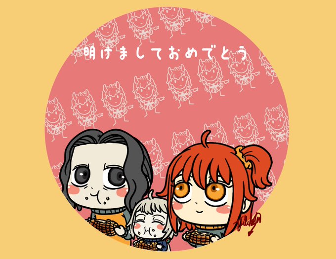 あけましておめでとうございます。今年もよろしくお願いします。焼きとうもろこしが食べたい… 🌽🎉 Happy New Year to all of you. I want to eat a grilled corn. #剣ジル #ぐだ子 #ジル・ド・レェ #ジルぐだ♀️ #ジャンヌ・オルタ・リリィ #CHIBI #digitalart #digitalillustration #イラスト