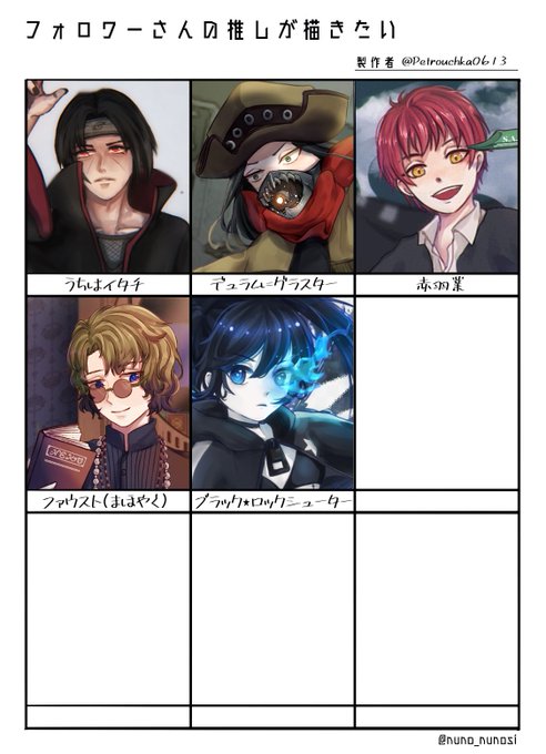 みんな、ありがとうございました! がっつり描けて大満足🥰 #フォロワーさんの推しが描きたい ご覧の通り枠が余ってるのでまだまだリプ待ってまーす!固ツイに募集ツイート貼ってますがリプはこの投稿でも直でも〇 (2回目でもええんやで)