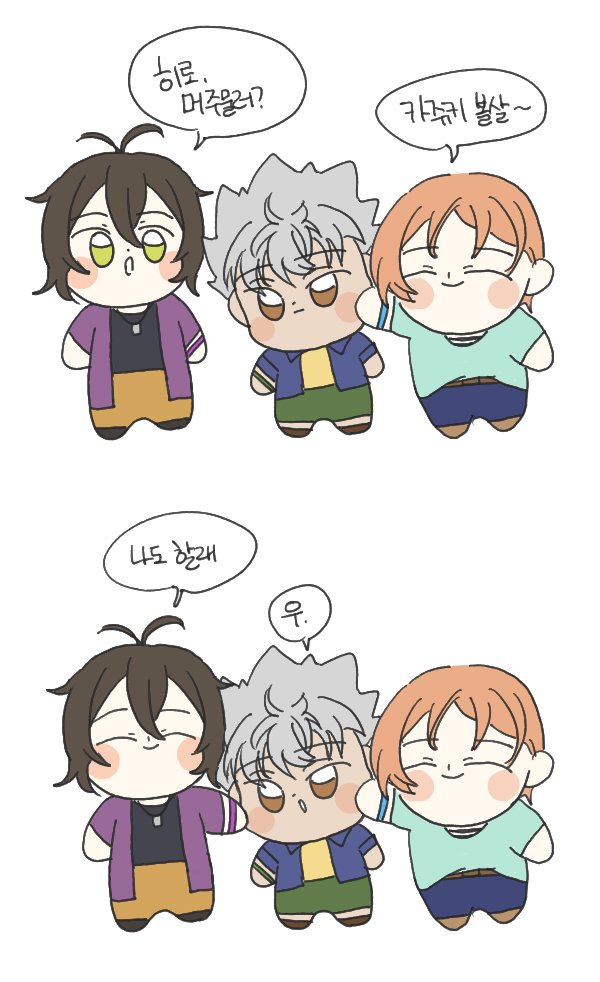 55 56 전에 실트에 캐캐체있을때 낙서한 애기히로와 수호캐릭터 신도하 중등부까진 수호캐릭터랑 짝짝 잘 놀았을 것 같은데 코우지랑 헤어지고 나서는 알에 x붙었을 것 같아 그리고 오버레 결성된날 x가 사라지구 정화되기 19/09/22 23:36
