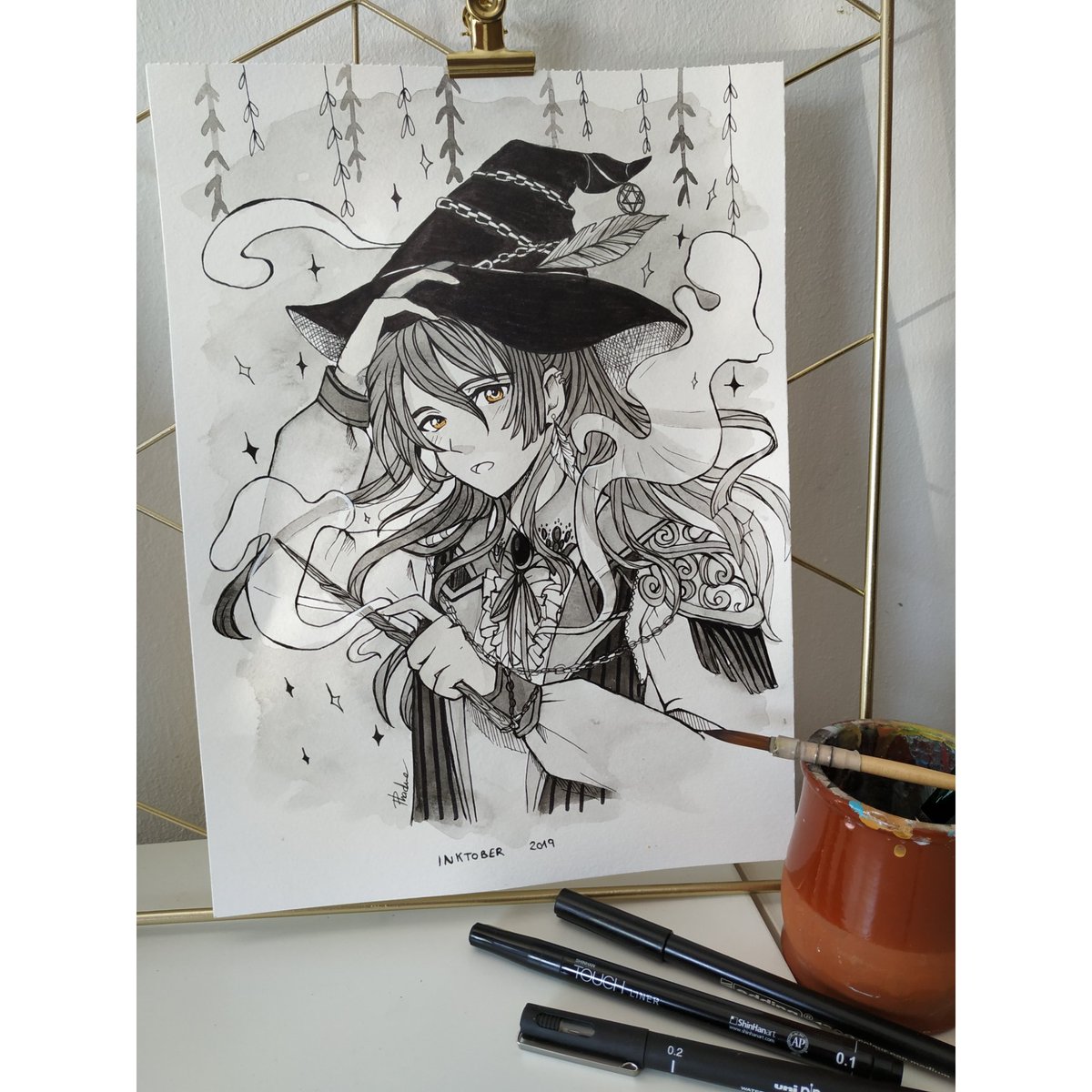 Empieza el Inktober!! Nunca he conseguido terminarlo y tampoco confío en que terminaré este jajaja, pero haré los que pueda!Me voy a basar en la lista de @raqueltraveart k me gusta mucho! #inktober #inktober19 #inktober2019 #raqueltraveink19 #witch #ArtOfTheDay #inktoberday1