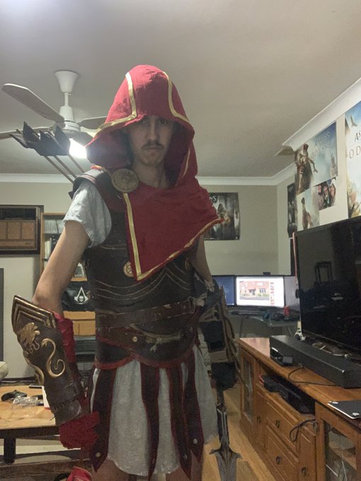 Still got a few things to sus out buuuut... not bad and many thanks to @CosplayChris for passing alexios to me!!! ❤️ Also sorry if house is bit messy 😅 @assassinscreed @UbiAustralia @Ubisoft @UbisoftQuebec @MikeAntonakos #assassinscreed @MentorsGuild @ACFirstCiv #cosplay