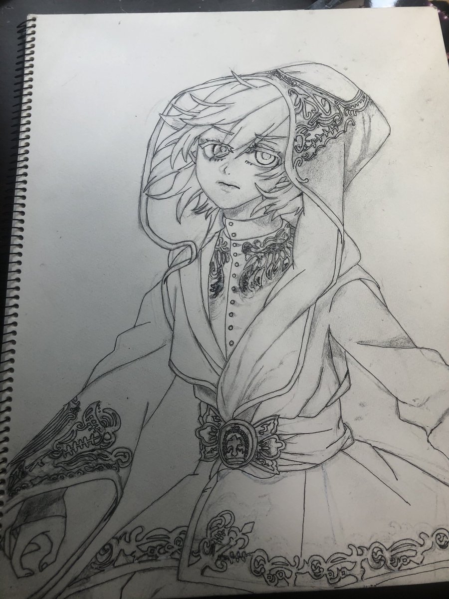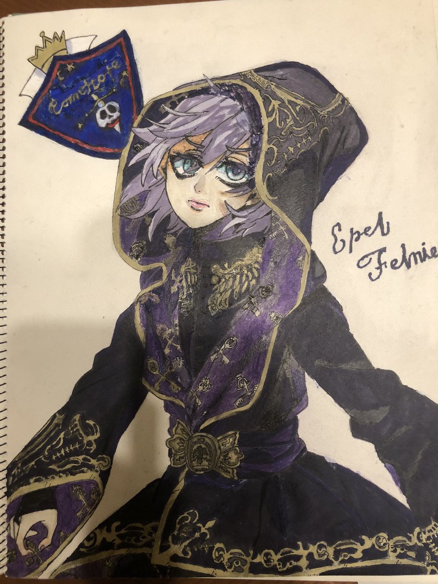 推しだから自分のベストを尽くしたんだけどコピック初挑戦で奮闘したら輪郭ガタついてみえるからもっと細いミリペンで!とか、グラデーションができてない!とか色々と課題ができた。 実は今同じイラスト描いてるから次はもっとマシになってほしい。 #エペル #ツイステファンアート