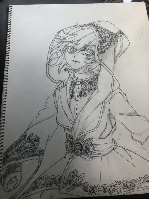 実は式典服のエペルくんは2回描いた。 1枚目はコピックでとにかく塗ってみたけど満足いく仕上がりにならなかったから悔しくてもう一度描いたやつを眠らせてある。 今度こそ‼️ #ツイステファンアート #twstファンアート #ツイステ絵描きさんと繋がりたい #エペル #ポムフィオーレ