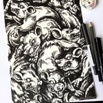 It's #PortfolioDay ! I'm PhaseChan, a UK based artist who specialises on detailed black and white inking, with a focus on birds, monsters and horror. ☠️