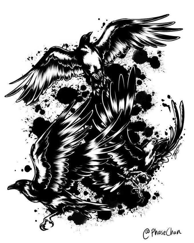 Morning all - it's #PortfolioDay ~! 🐤 I'm PhaseChan, a UK based illustrator who loves to draw birds, monsters and horror art. I specialise in black & white inking, & even create large scale wall art~!