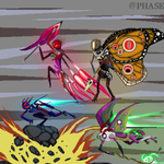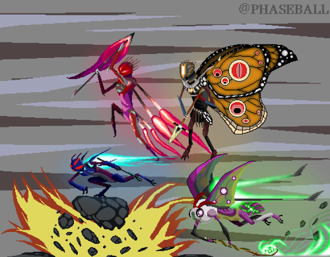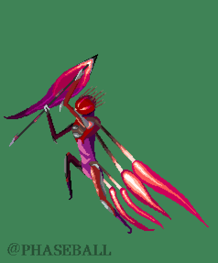 scarlet dragon(aka jump gal) #PixelArt #conceptart #scarletdragonfly she the final character in my group bug inspired hero thingies