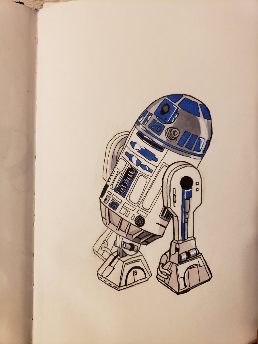 #Inktober Day 8 #R2D2. When I finished inking it I had to add some blue finish it off. #Inktober2019