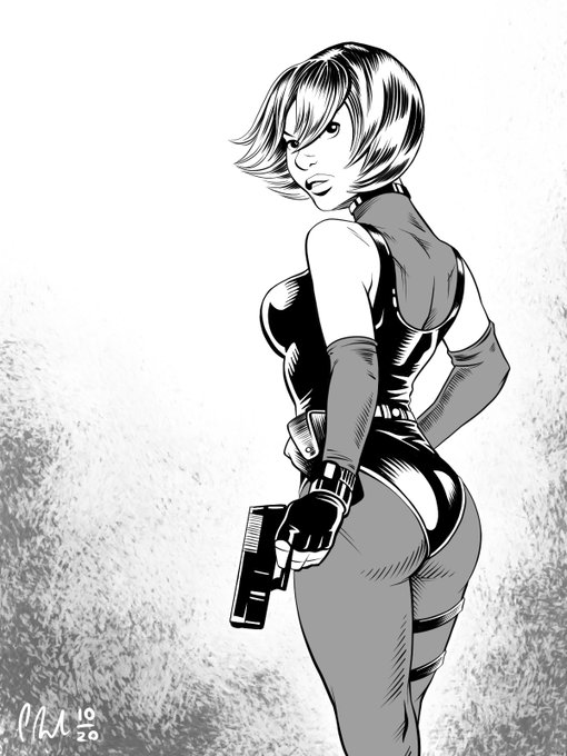 I've been dipping into Inktober using survival horror characters as my theme. Check out more on my instagram instagram.com/philipreadart/ #survivalhorror #DinoCrisis #silenthill #ResidentEvil2 #inktober2020