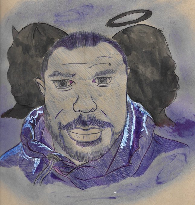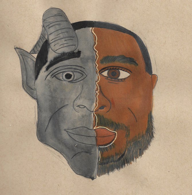for the 25 inktober drawing I drew a picture of myself showing good and evil and the choice each have. #inktober2020 #inktober2020day25 #goodandevil #selfportrait