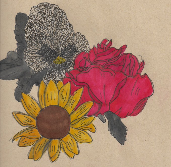 For the 24th inktober I drew flowers #Flowers #inktober2020 #inktober2020day24 #roses #sunflower