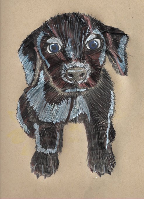 I have no theme for today. This is a picture of a black lab puppy who is patiently waiting for a owner to take her home and give her a brand new life. #inktober2021 #inktober2021day21 #inkoberchallenge #blacklab #puppy