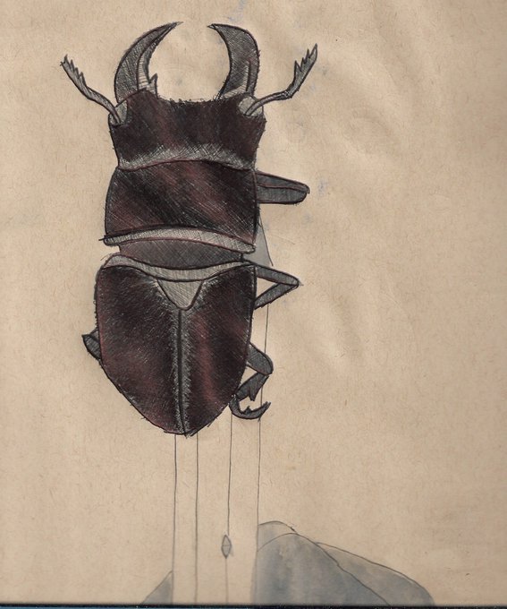 for today's theme of inktober is stand. Stand could mean different things like standing up for what you believe in. In this picture I drew a stag beetle that was standing on a pencil. #inktober2021 #inktober2021day16 #stagbeetle #beetle #stand