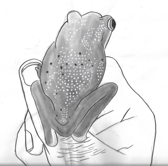 this is from 2016 summer when i saw a frog while going for a walk and decide to let it hang with me. #inktober2022day4 #inktober2022 #frog #nature #animals #amphibians #greenfrog