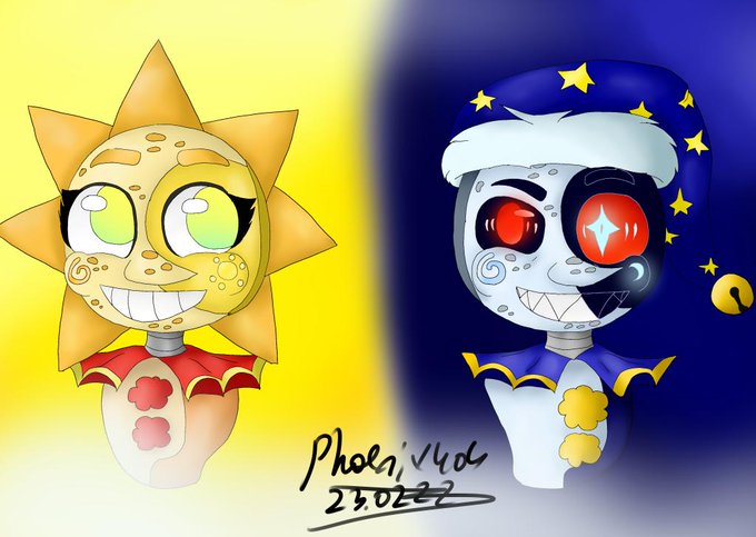 Phew, I finally finished it.... #arts_by_Phoenix #Fnaf #Securitybreach #fanart #Sun #moon #Sundrop #Moondrop