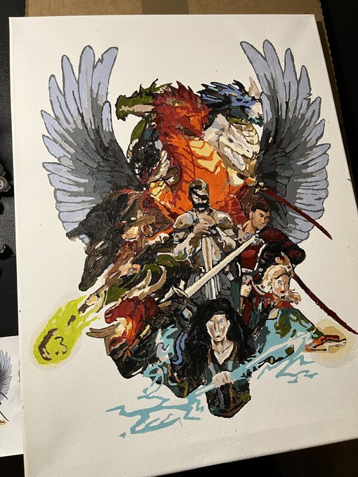 Going to clean it up a bit due to some loss in features, but finished a paint by number to hang on my wall of my first dnd art commission done of my group set in Exandria by @Tiffasheee #dnd #dndart #dnd5e #dungeonsandragons #ttrpg #criticalrole #Tiamat