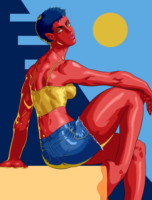 Demon girl on the beach #イラスト #originalcharacter #art #OC #tomboy