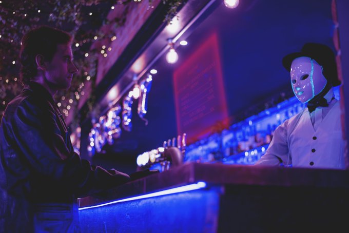 #Cyberpunk bars continue with thanks to Baker St. Pub letting us do this #cosplay. Not quite the new face of #Prestonbynight though - consensus seems to be we all prefer real people behind the bar!