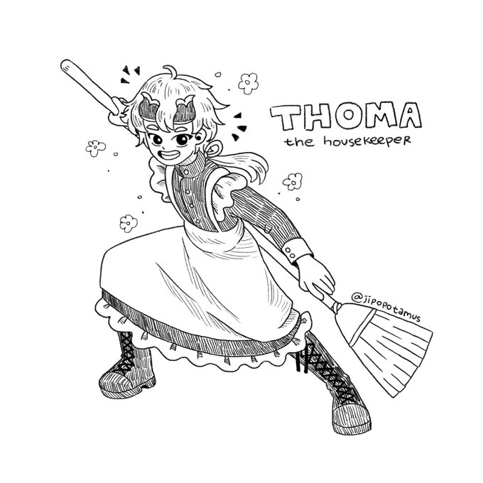 I just can't help not to draw him in a maid uniform 😭😭😭 #原神 #genshinimpact #thoma #genshintwt #genshinimpactfanart