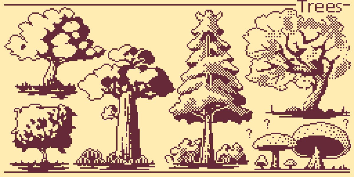 Some more #pixelart doodles but this time with trees. And mushrooms...