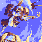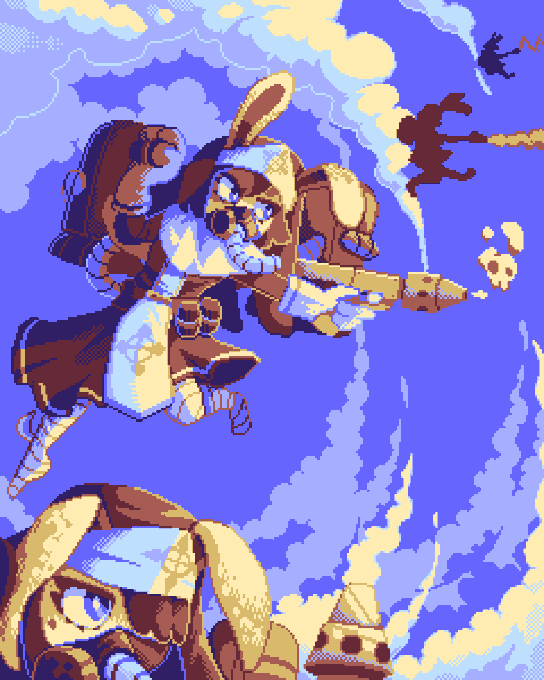 Some #pixelart bun nuns in jet packs ready to grill from the air. Cookies pls, @Nikingply Also trying out a new 8 color pallete.
