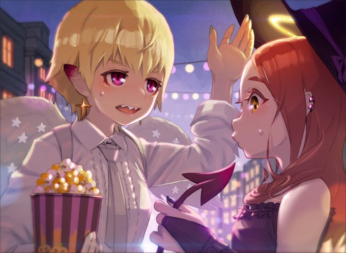 #パルミー超自撮りイラコン イラコン参加しました! 👼👿天使に憧れる悪魔と、悪魔と仲良くなりたい天使がコスプレ会場でバッタリ出会った… という1枚 #Halloween2022 #ハロウィンイラスト