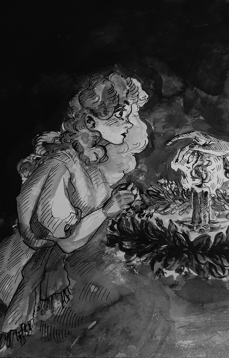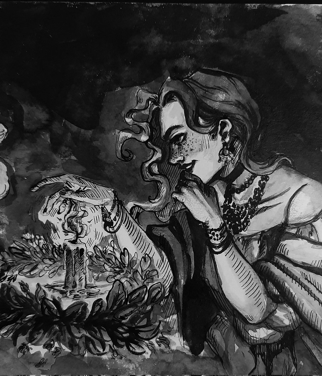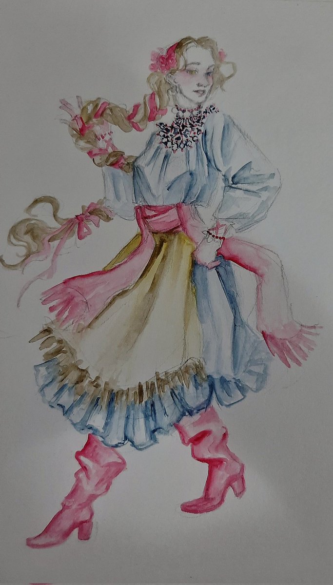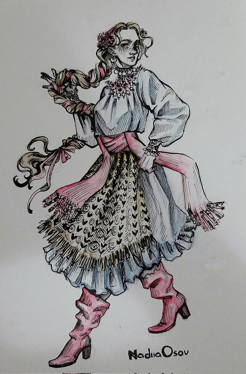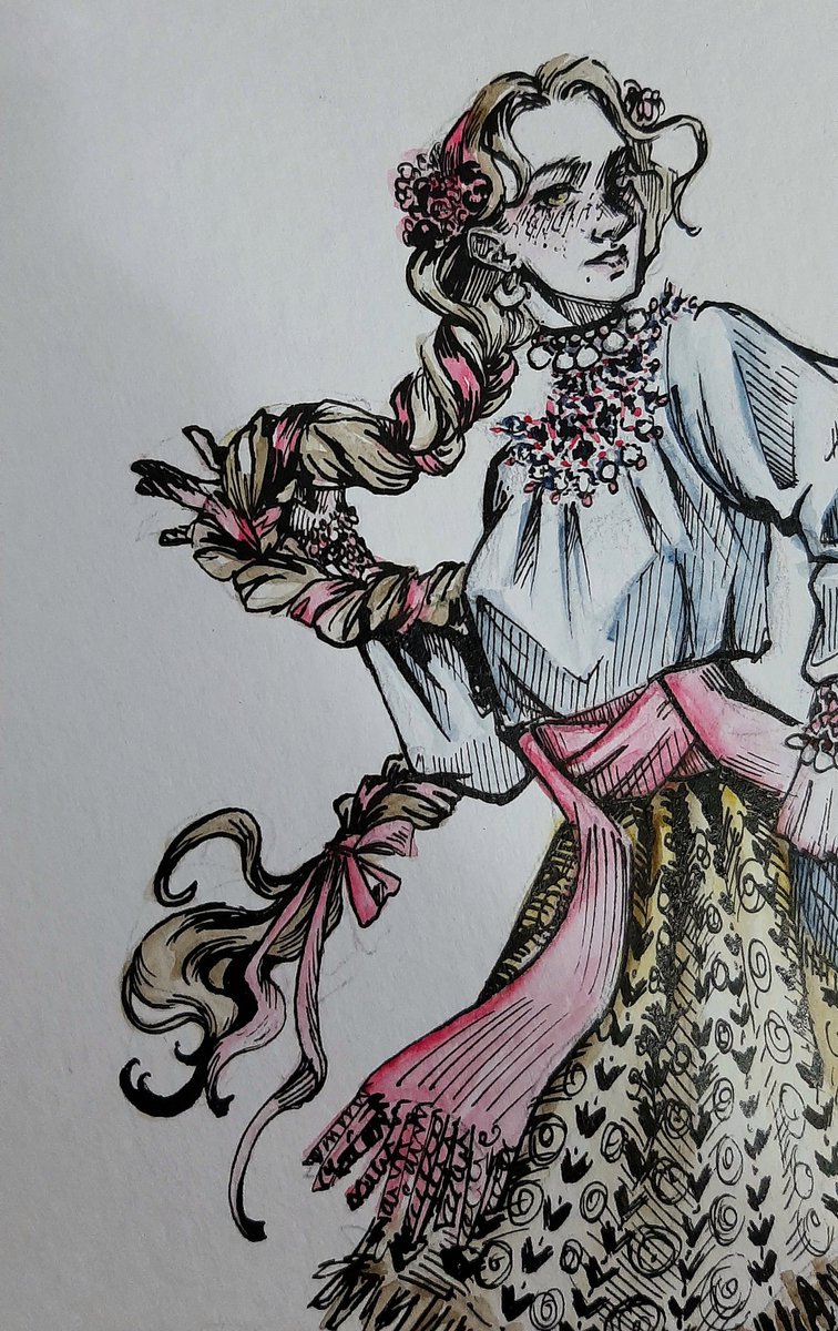 День 2. Вечорниці Я дуже відстаю, але я ще паралельно стопятсот задач роблю і я хочу щоб ці роботи прям гарні дуже були, тому стараюсь. Меланія до одруження, отак от зваблювала хлопчаків і дівчат на танцювальних вечорах #украрт #артКозацтво #Inktober #inktober2022 #інакотобер