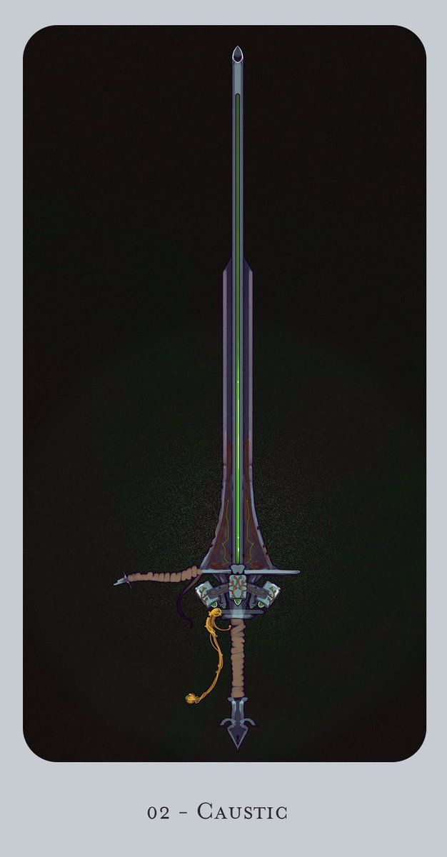 #swordtember Day 2 - Caustic An arcane bunker buster, a weapon designed for foot soldiers to deal with mages and their golems. A heavy rapier carrying several caustic payloads. In the hands of frontline swordsman they can fell any construct, wall, or tower in a single lunge.