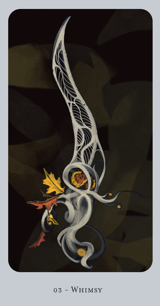 #swordtember Day 3 - Whimsy Autumns Passing, a strange artifact gifted by caring fae to those who are in the middle of struggling with the unease of transformative periods. Guiding them, if only for a moment, into the wonders of a child like adventure.