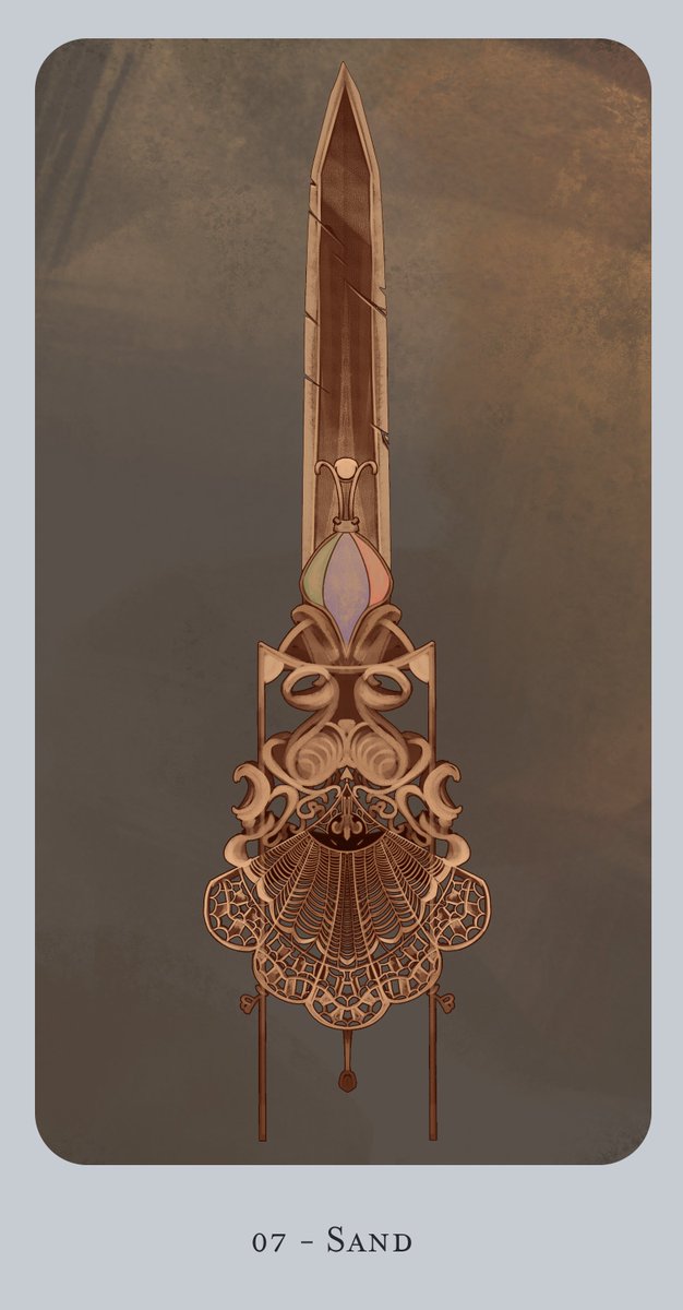 #swordtember Day 7 - Sand Claws of the Arid River, ornamental katars that pull their blades out of the dunes beneath them. Their ornamental beauty and hidden blades make them fierce representations of status.