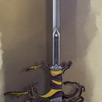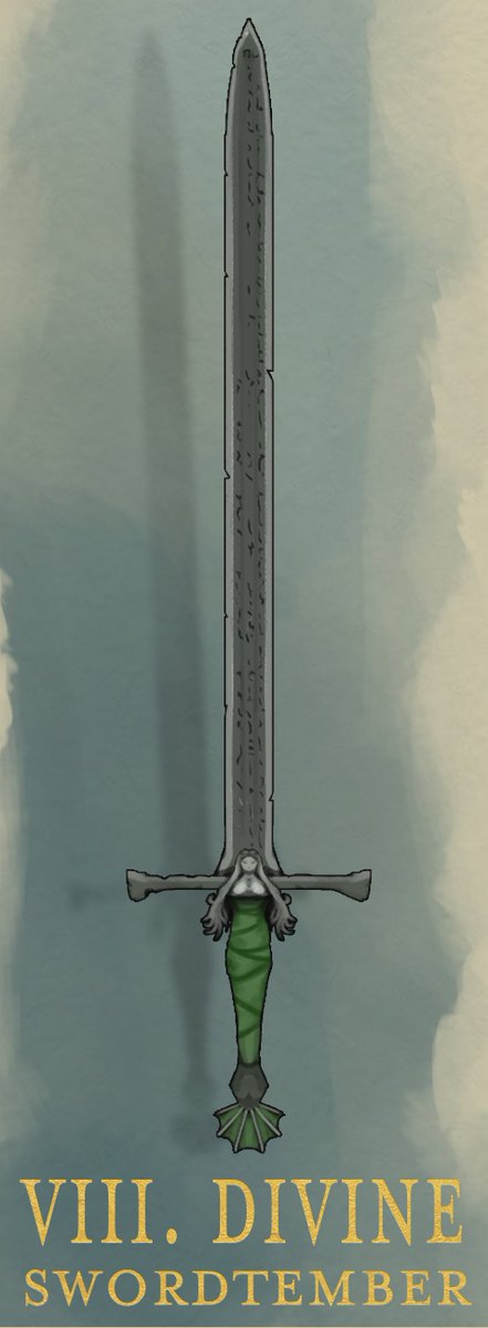 #swordtember Day 8! Divine Relic. A sword awaiting its keeper, kept by the lady of the lake. Its duty and meaning forgotten in a world that has grown past the need for fairy tails. Now a keepsake, the last familiar relic to keep a fading spirit company.