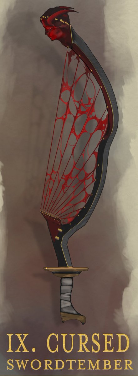#swordtember Day 9! Missed a day because of how hectic lightbox has been. Here is the Stygian Harp, a powerfully malicious blade. Passed down to those with silver tongues sharp enough to make even the strongest hearts bleed. Become the maestro of the death song, but at what cost?