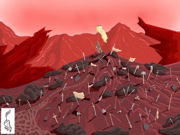 So I made a lil handout piece for how the party found my warforged character Nnim Rodd at the battlefield they fell in. A bard and banner bearer from the ‘Hellriders Great Ride’, they are here to ride again through Avernus! #art #digitalart #procreate #fanart #dnd #oc #landscape
