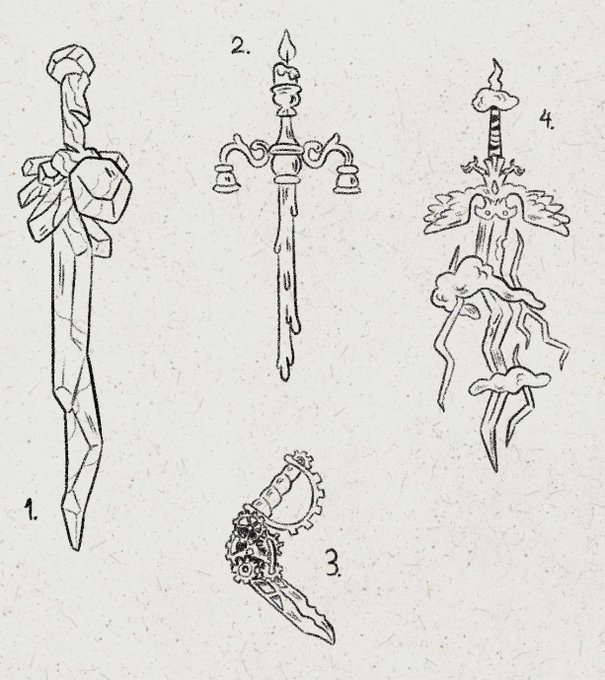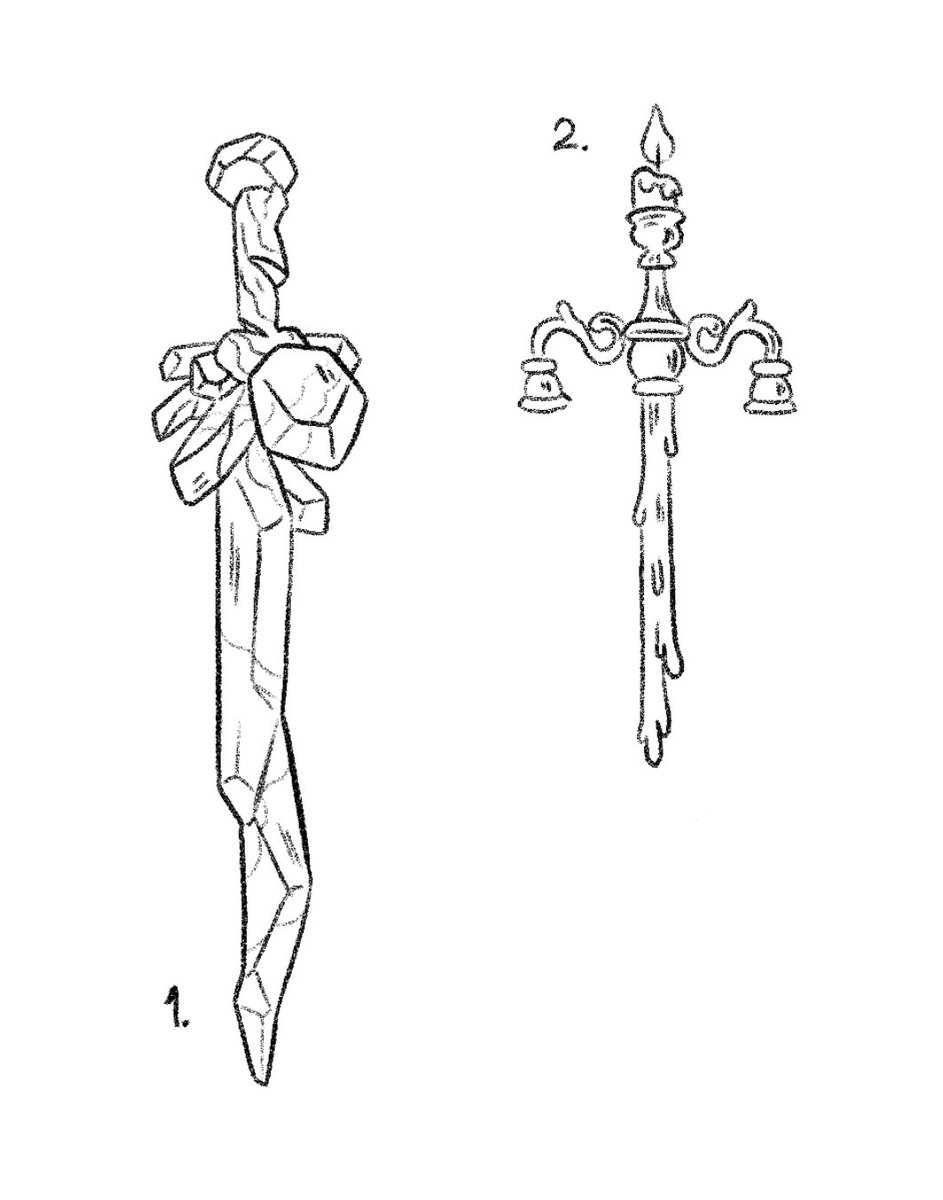 Trying to do #swordtember2022 ! Going to color them all at the end but heres 1 & 2, Crystal & Candle