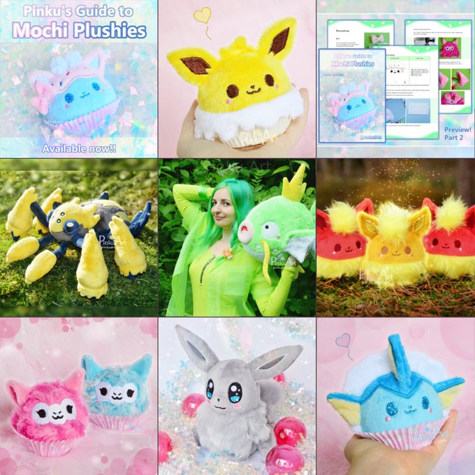 #ArtVsArtist2020 💚 Quite the..chaotic year, but I still managed to make a number of plushies. :) Most importantly: I wrote a plushmaking ebook! If you want to learn how to make Mochi plushies yourself, it's the pinned Tweet! #ArtVsArtist#CustomPlush#Weeb#Pokemon#Kawaii