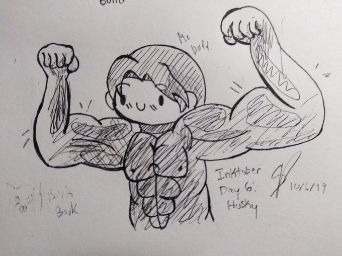 This pretty boi be buff Inktober Day 6: Husky 💪💪💪 #Inktober2019 #inktoberday6 #traditionalart #Inktober