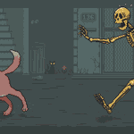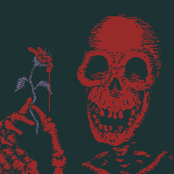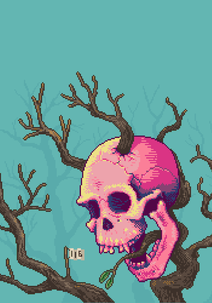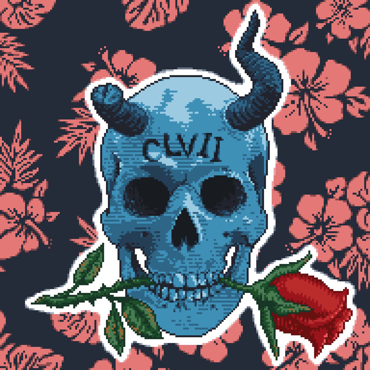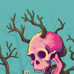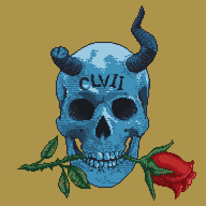 #今月描いた絵を晒そう 今月はプロクリエイトばっか触ってた 「いくつになっても厨二病」が今ちょっと楽しいww ドットはcLさんの3色のおかげで描けましたw ちなみにこのガイコツのでドットピクトのフォロワ1000超えた! (って事はcLさんの力で1000超えた?!w)