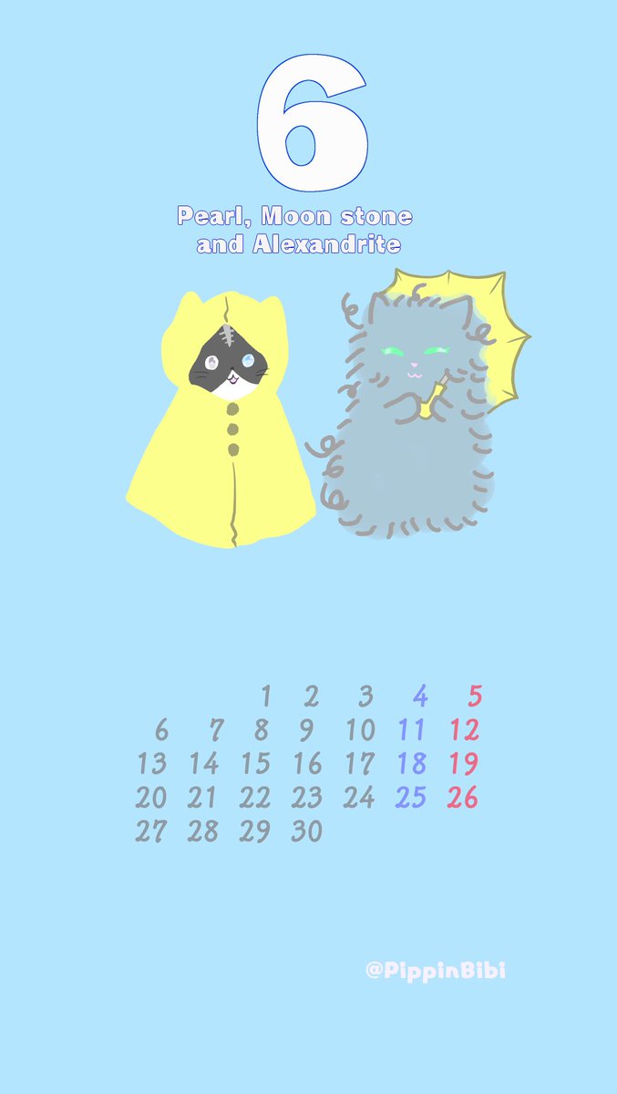 誕生石と猫のカレンダー6月分です 6月は真珠、ムーンストーン、アレキサンドライトの3つだそうです✨ 私的使用の範囲でしたらご自由にお使いください #カレンダー #イラスト #待ち受け