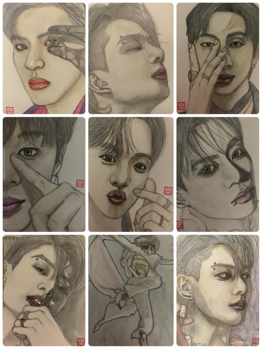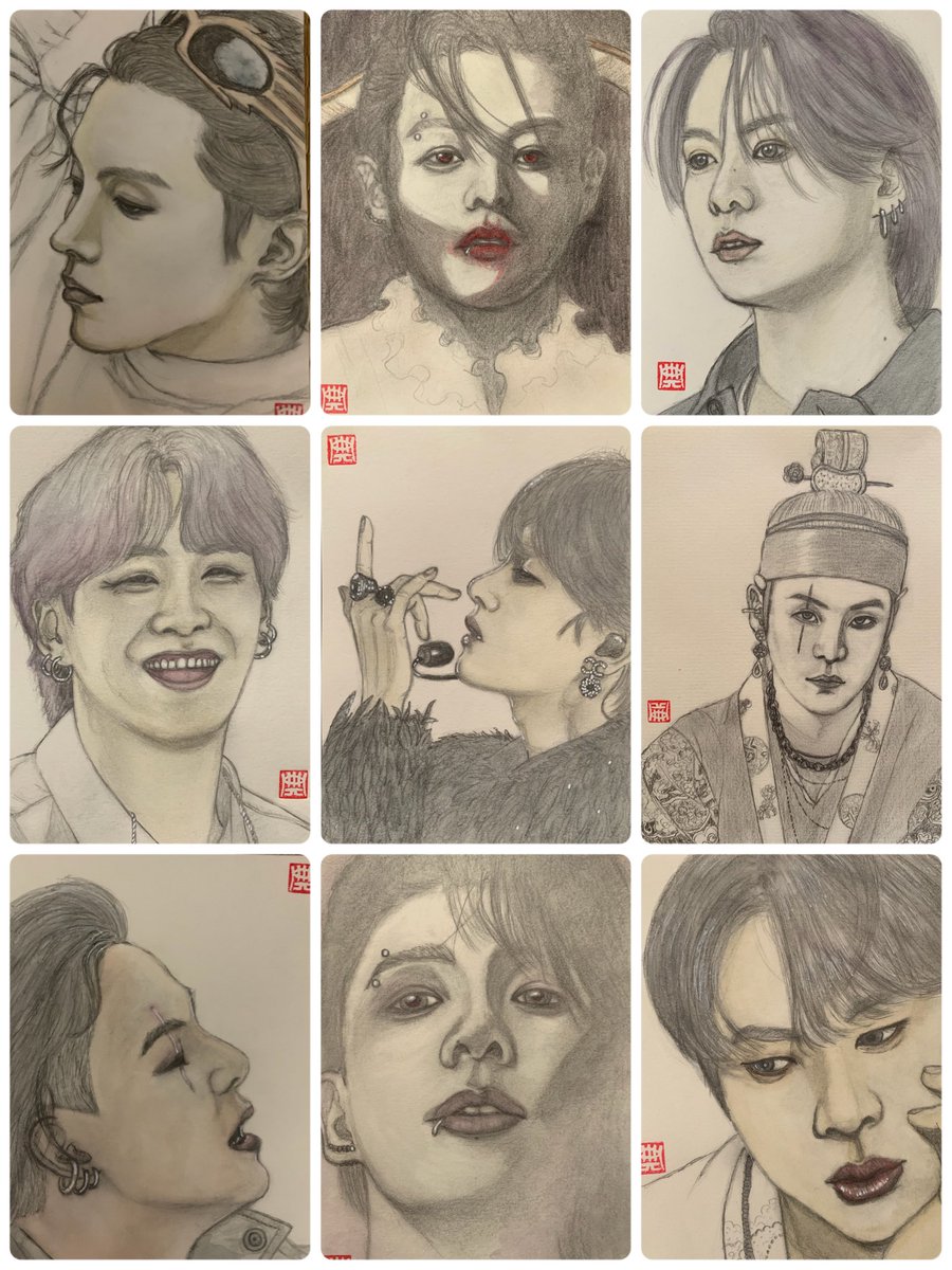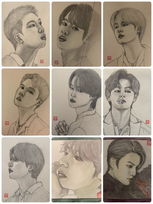 BTS絵墨10枚、鉛筆画28枚 計38枚でした 来月は…推しの誕生日💜 #BTS #RM #JIN #SUGA #jhope #JIMIN #V #JUNGKOOK #drawing #Pencildrawing #絵墨 #今月描いた絵を晒そう twitter.com/PiratesNyori…