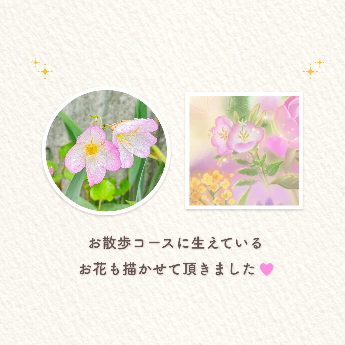 8 37 ご依頼で、イラストを描かせて頂きました❣ 実家にいる猫ちゃんのため、なかなか会えず...。 イラストを見ていつでも癒やされたい、という想いでご依頼くださいました✨ 長毛種のふわふわ猫ちゃん☺️ お花を見ながらお散歩をするのが大好き、とのことだったので、その様子を描きました🌼 23/07/04 19:39