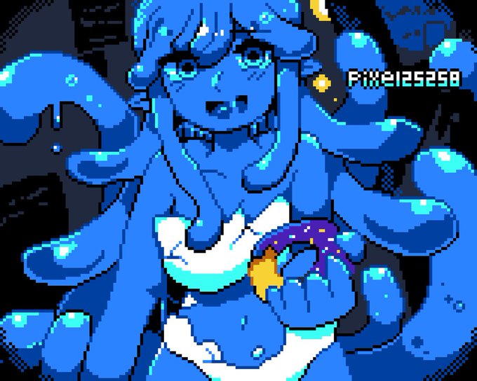 ドーナツくれるらしいスライム娘ちゃん🍩🟦 #ドット絵 #pixelart