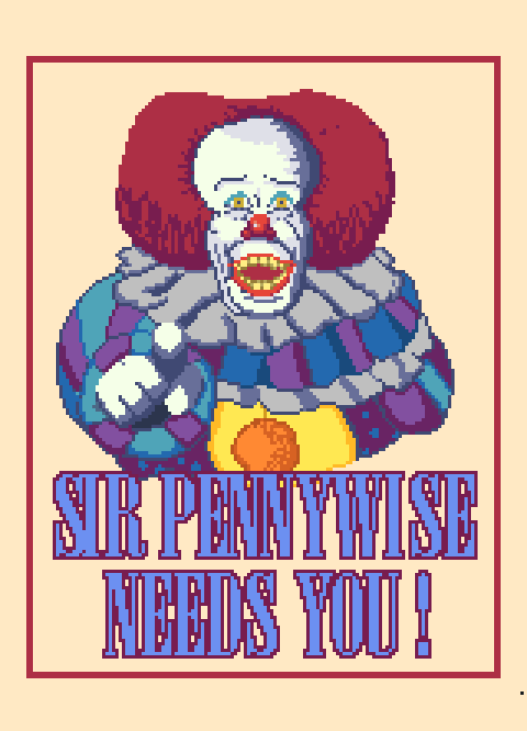 3 6 "SIR PENNYWISE NEED YOU!" #ドット絵 #pixelart #pixelmovies #映画好きと繋がりたい 23/01/04 15:07