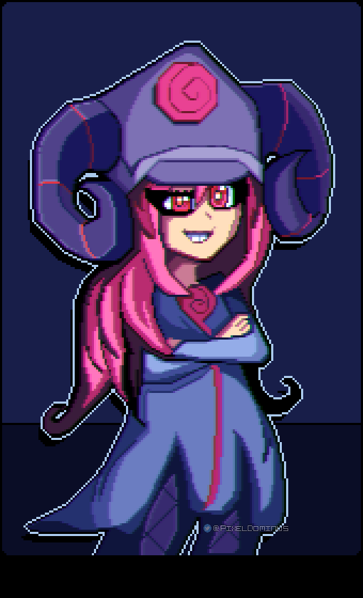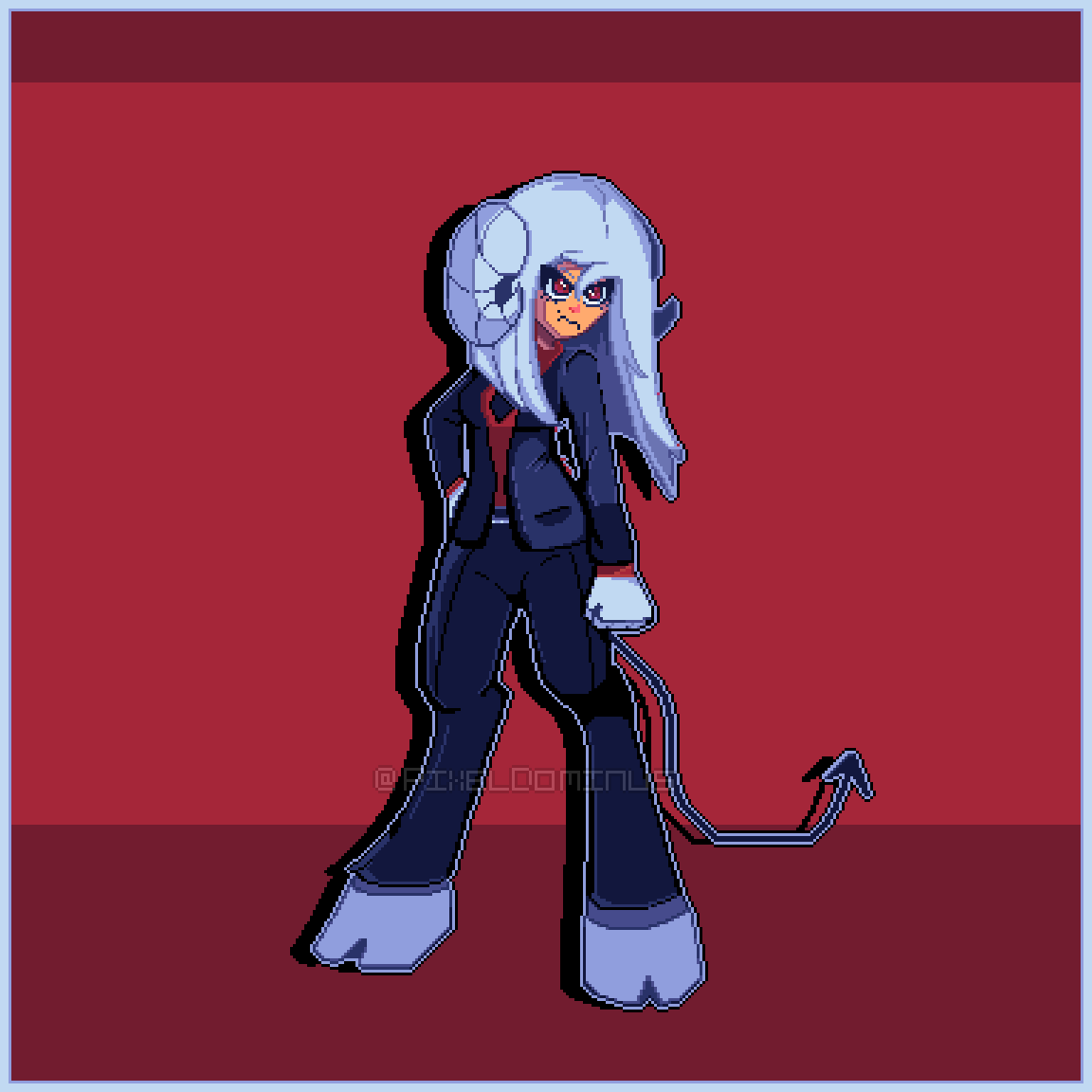 Replayed #Helltaker again and I got the urge to reimagine mi OC Pomulus with an "Helltaker-ish" outfit. #ドット絵 | #pixelart