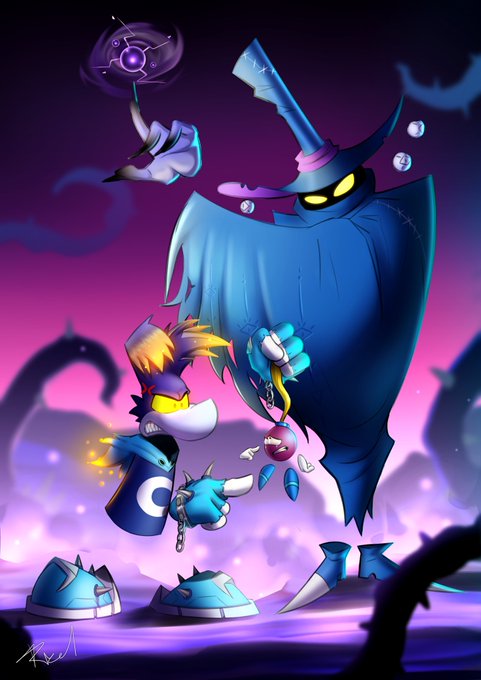 Raymesis and Mr Dark😈 It's my first time drawing these characters and it was a ton of fun. I played around with Raymesis's design and I really like the whole piece came out. #Rayman#Ubisoft#Raymesis#mrdark#Fanart#digitalart#artist @UbisoftParis @RaymanGame