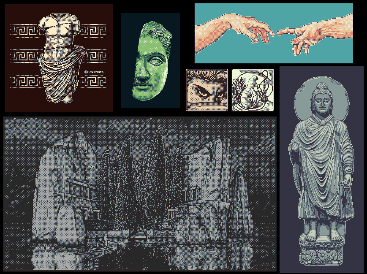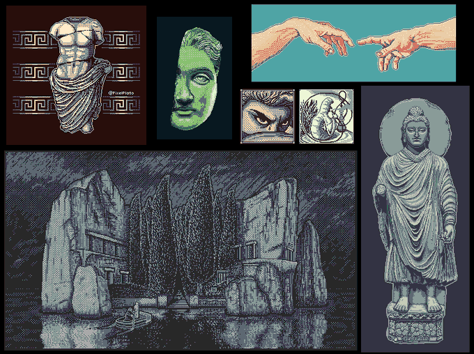 Hello, I am Pixel Plato. I make pixel art based on classical artworks and architecture. I'm looking forward to this new year to make new and interesting things! #PortfolioDay #pixelart